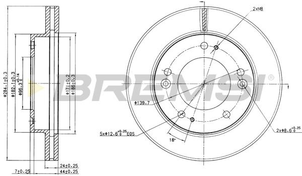 BREMSI CD6993V - B. DISC FRONT DIA.284 VENT. KIA SPORTAGE